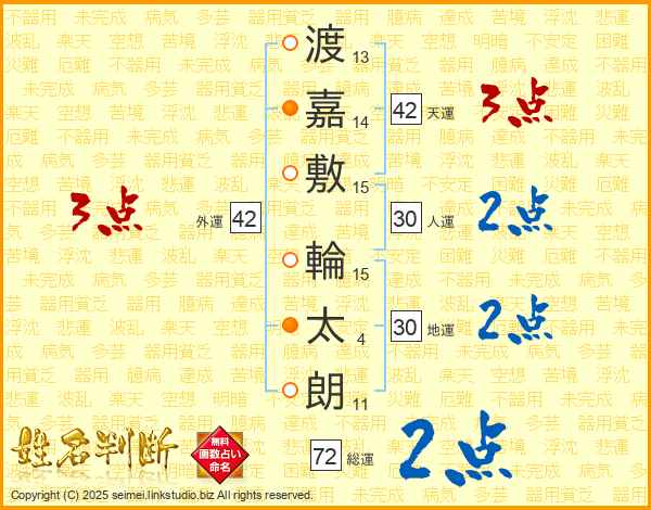 渡嘉敷輪太朗さんの総運は72画の2点!