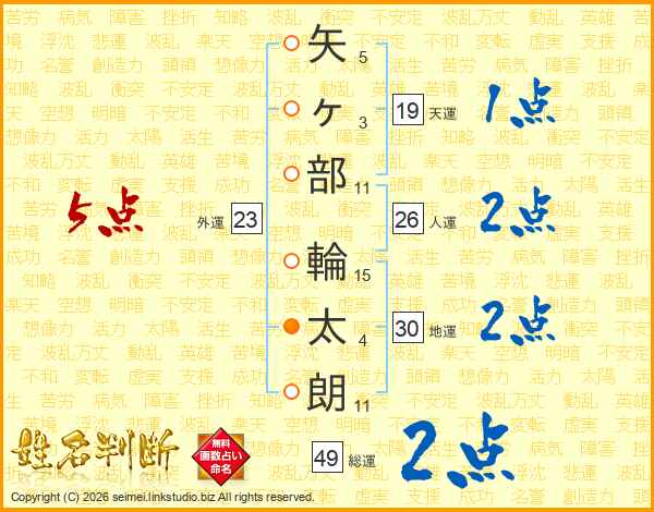 矢ヶ部輪太朗さんの人運は26画の2点!