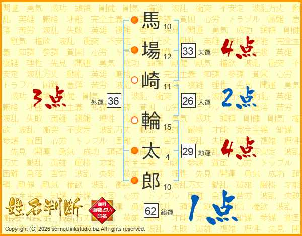 馬場崎輪太郎さんの天運は33画の4点!