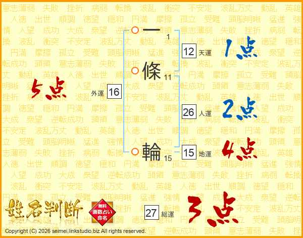 一條輪さんの総運は27画の3点!