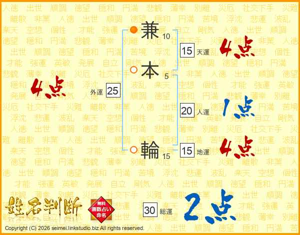 兼本輪さんの天運は15画の4点!