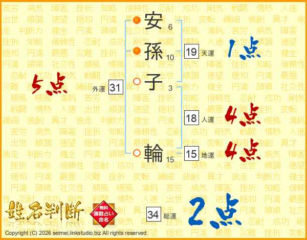 安(6画)孫(10画)子(3画) 輪(15画)