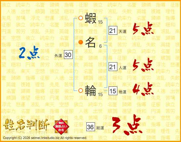 蝦名輪さんの天運は21画の5点!