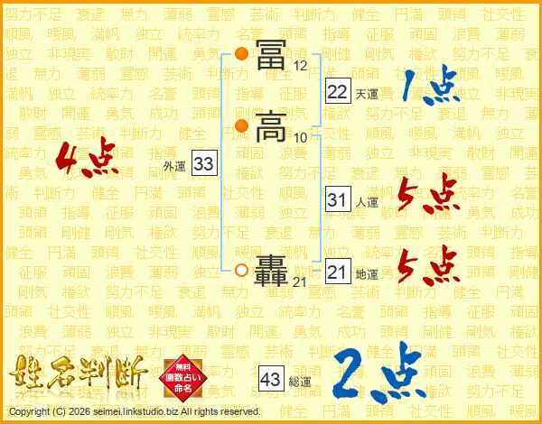 冨高轟さんの天運は22画の1点!