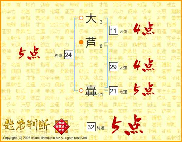 大芦轟さんの総運は32画の5点!