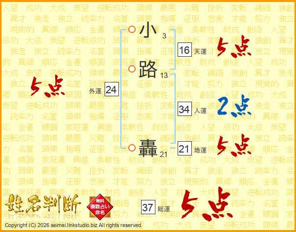 小路轟さんの総運は37画の5点!