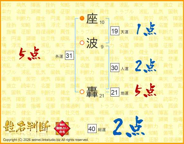 座波轟さんの地運は21画の5点!