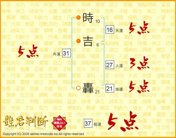 時吉轟さんの総運は37画の5点!