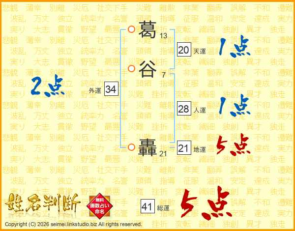 葛谷轟さんの地運は21画の5点!