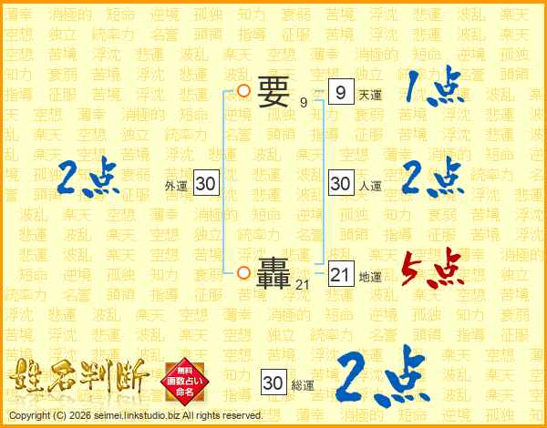 要轟さんの人運は30画の2点!