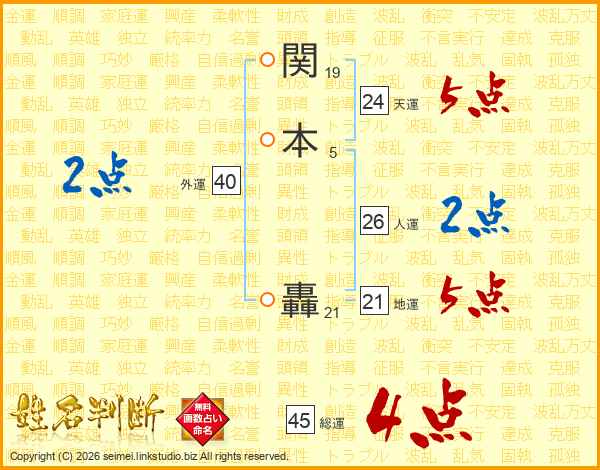 関本轟さんの人運は26画の2点!