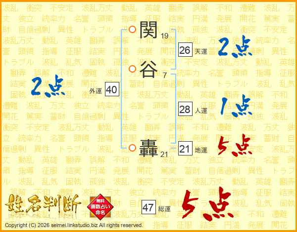 関谷轟さんの総運は47画の5点!
