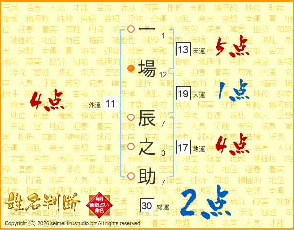 一場辰之助さんの地運は17画の4点!