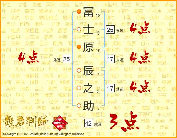 冨(12画)士(3画)原(10画) 辰(7画)之(3画)助(7画)