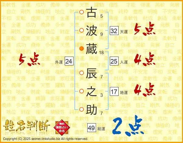古波蔵辰之助さんの総運は49画の2点!