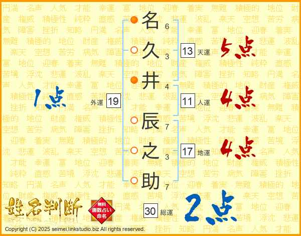 名久井辰之助さんの人運は11画の4点!