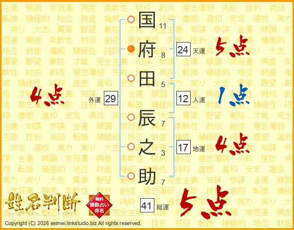 国府田辰之助さんの総運は41画の5点!