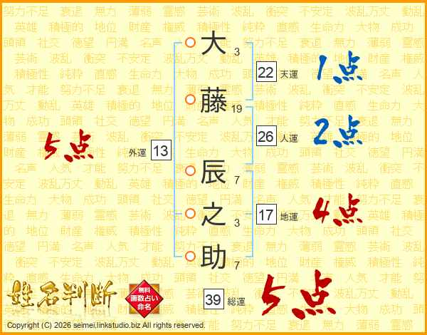大藤辰之助さんの総運は39画の5点!