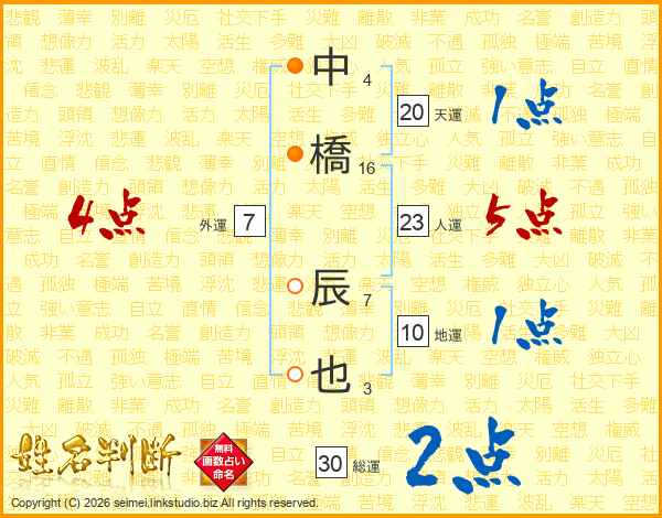 中橋辰也さんの人運は23画の5点!