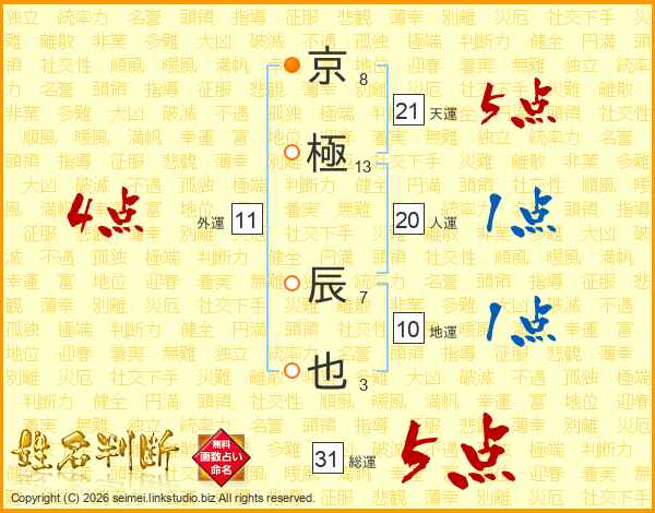 京極辰也さんの総運は31画の5点!