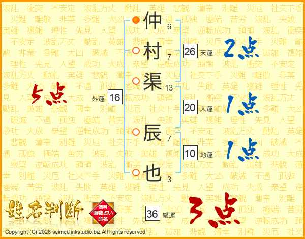 仲村渠辰也さんの天運は26画の2点!