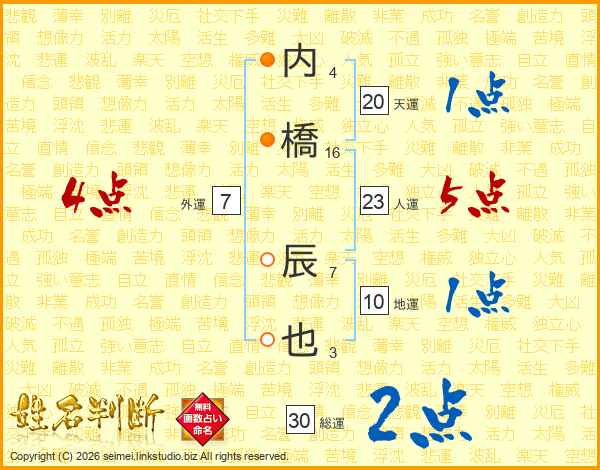 内橋辰也さんの総運は30画の2点!