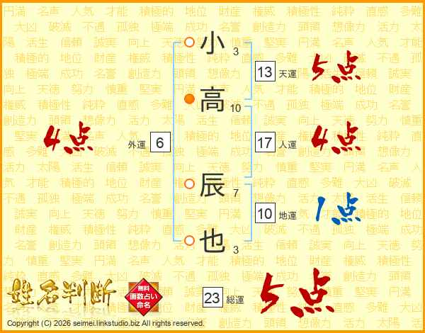 小高辰也さんの総運は23画の5点!