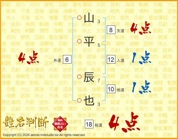 山平辰也さんの総運は18画の4点!