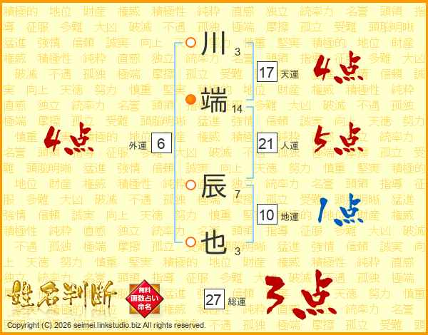 川端辰也さんの天運は17画の4点!