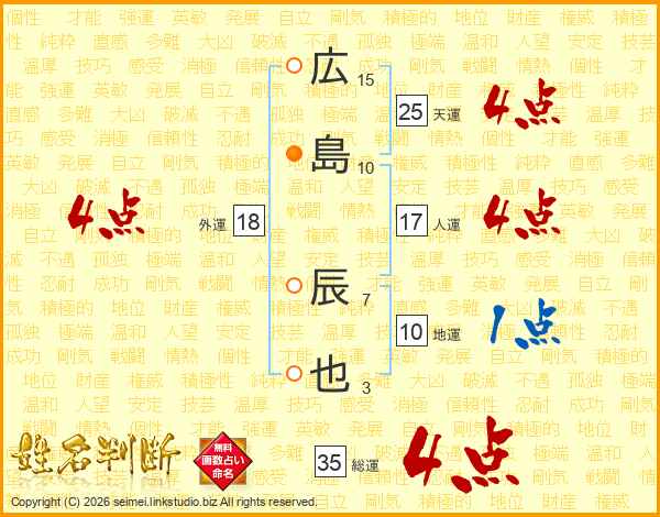 広島辰也さんの総運は35画の4点!