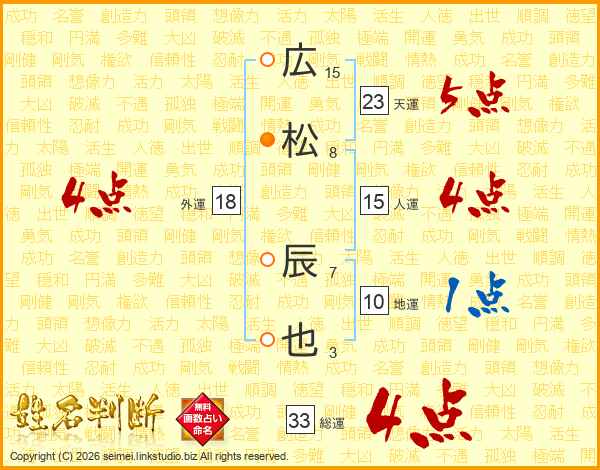 広松辰也さんの総運は33画の4点!
