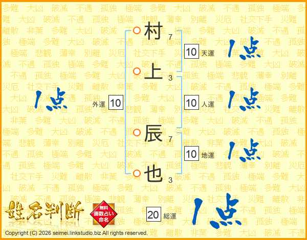 村上辰也さんの天運は10画の1点!