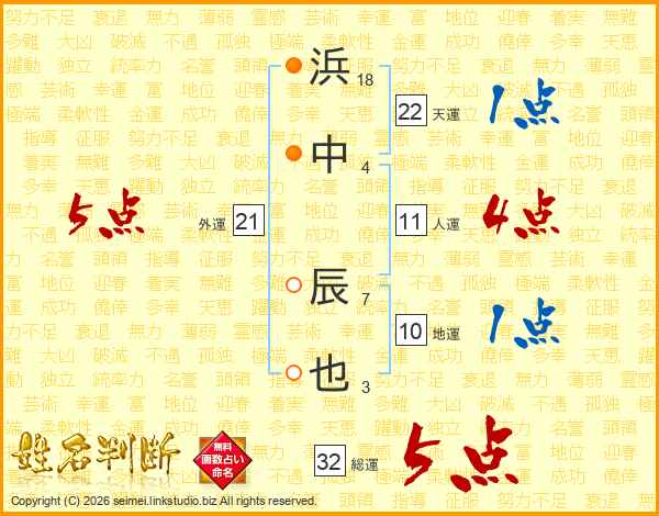 浜中辰也さんの外運は21画の5点!