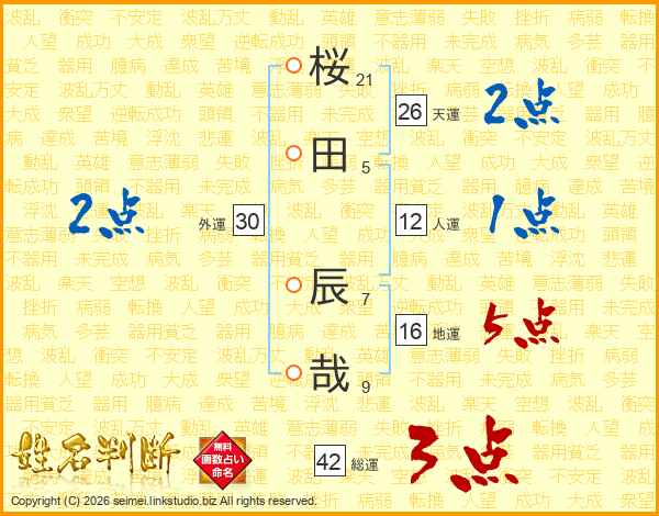 桜田辰哉さんの天運は26画の2点!
