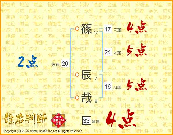 篠辰哉さんの総運は33画の4点!