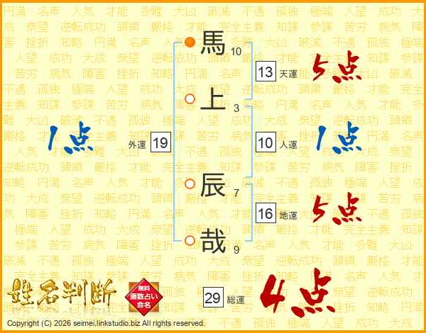 馬上辰哉さんの天運は13画の5点!