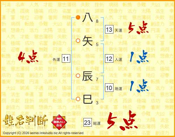 八(8画)矢(5画) 辰(7画)巳(3画)