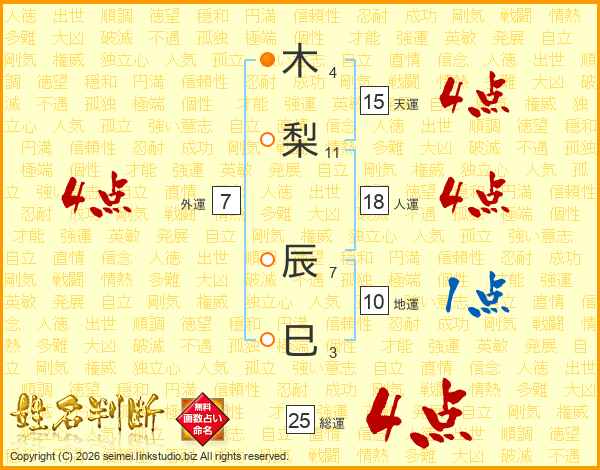 木梨辰巳さんの総運は25画の4点!