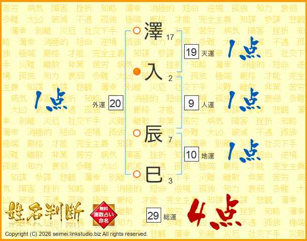 澤(17画)入(2画) 辰(7画)巳(3画)
