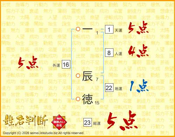 一辰徳さんの総運は23画の5点!