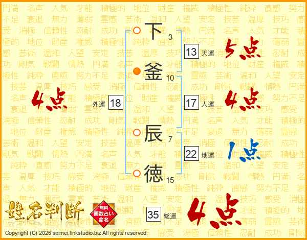 下釜辰徳さんの総運は35画の4点!