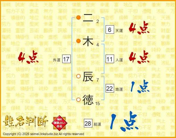 二木辰徳さんの人運は11画の4点!