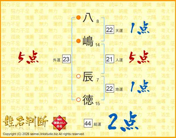 八嶋辰徳さんの総運は44画の2点!