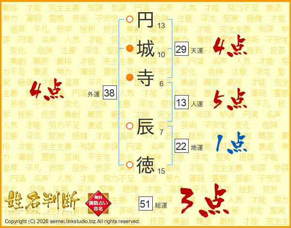 円城寺辰徳さんの総運は51画の3点!