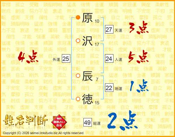 原沢辰徳さんの総運は49画の2点!