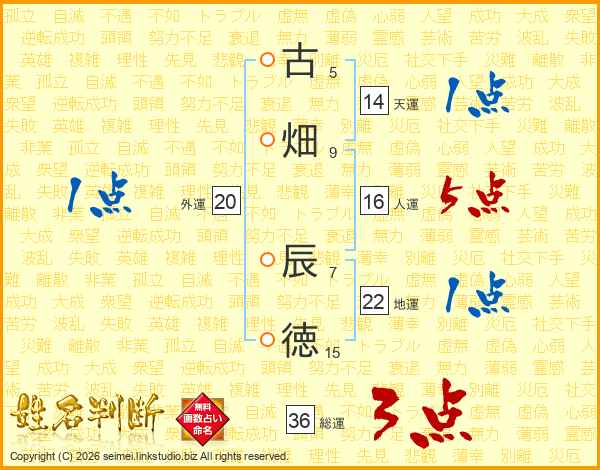 古畑辰徳さんの総運は36画の3点!