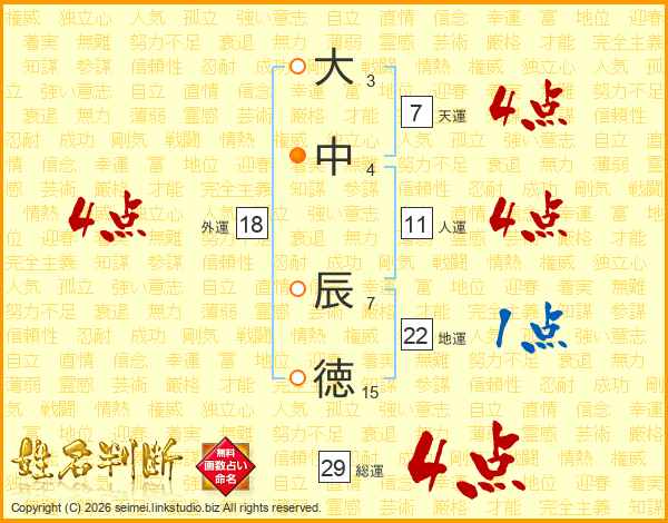 大中辰徳さんの人運は11画の4点!