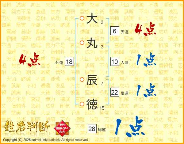大丸辰徳さんの外運は18画の4点!