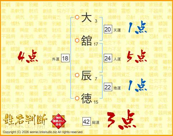 大(3画)舘(17画) 辰(7画)徳(15画)