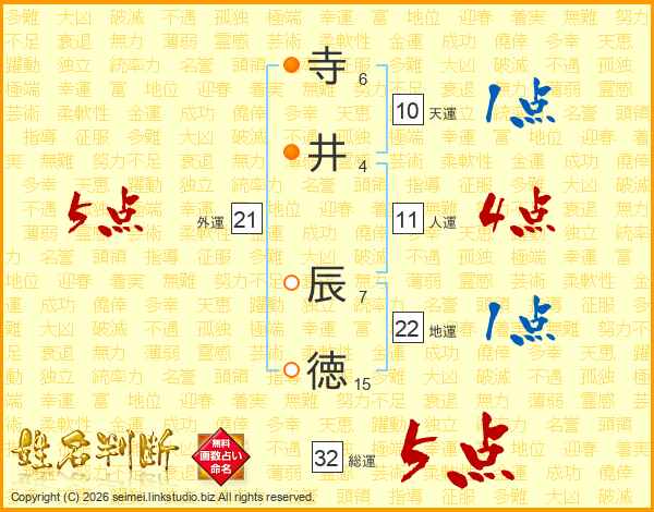 寺井辰徳さんの人運は11画の4点!